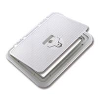 Négyszögletes vizsgálófedél, tárolófedél zárható, vízálló.