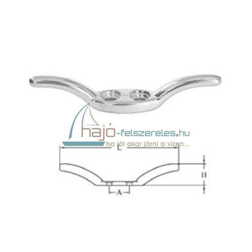 A4 rozsdamentes acél zászlókötél kikötőfül zászlórúdhoz. Ez a zászlókötél rögzítőfül a zászlórúd kötelének egyszerű és biztonságos rögzítésére szolgál. A forma kialakítása lehetővé teszi, hogy a kötelet könnyen rá lehessen tekerni és stabilan rögzíteni, így a zászló felhúzása után a kötél rendezetten és biztonságosan rögzíthető marad. A termék A4 minőségű rozsdamentes acélból készül, ezért kiválóan ellenáll a nedvességnek, a sós levegőnek és az időjárási hatásoknak. Emiatt hajós, kültéri és egyéb korróziónak kitett környezetben is jól használható.